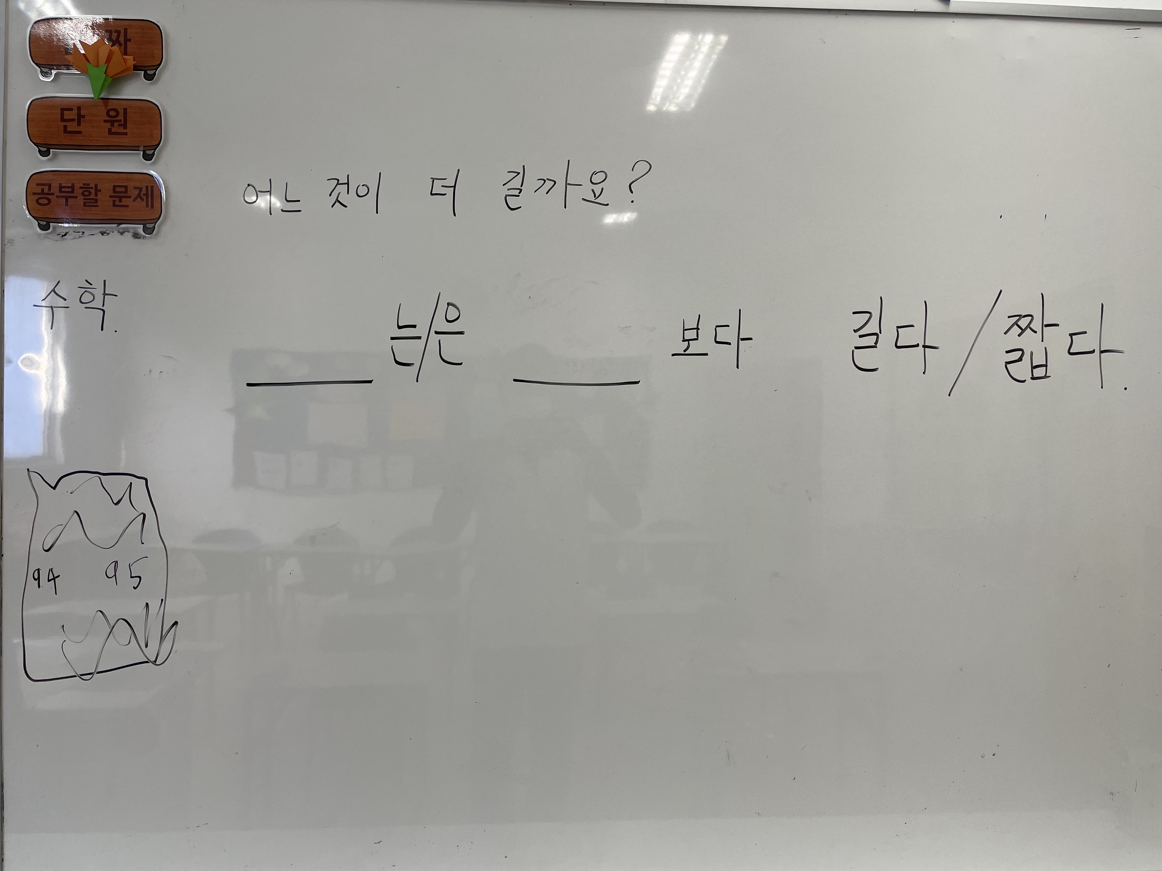 누구 것이 더 긴지 짧은지 알아보려고 합니다
